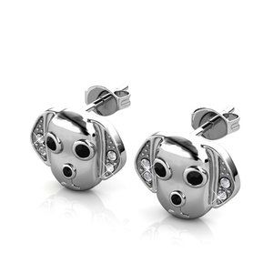 Adorable Puppy Dog Stud Earrings Made With Swarovski Crystals and 18K White Gold Plating.