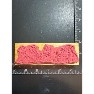 Featuring a whimsical design of five adorable dogs, this wooden rubber stamp is ideal for crafting, scrapbooking, or embellishing stationery projects.