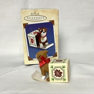 Add some charm to your holiday decor with this lot of two Hallmark Puppy Love ornaments, perfect for any dog lover. These ornaments feature adorable boxer and labrador designs, sure to bring a smile to your face. They were manufactured in 2003 and 2004 and come in their original boxes.