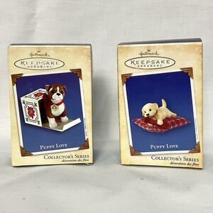 Puppy Love Hallmark Ornament Lot #13 & #14 Dated 2003 2004 Boxer & Lab