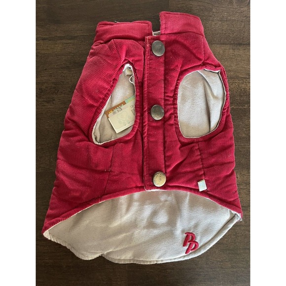 Puppy Pawer Dog Cat Warm Red Corduroy Reversable Vest Harness Hole Sz M NEW