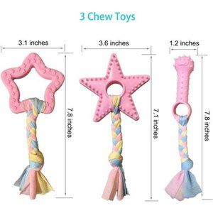 🧿【Chew Toys for small dogs】3 chew toys are different shapes or textures, this will keep puppies chewing to make them busy and soothes gums.The woven cloth will not produce small chips relative to the rope toy.