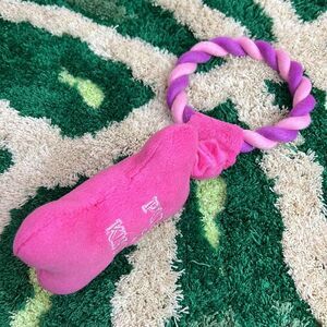 Pups & Kisses Pink Bone Valentine’s Day Dog Squeaky Rope Pull Toy NEW