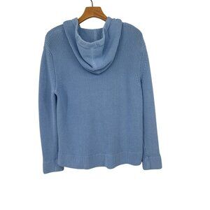 Pura Cashmere supima Cotton Fisherman Hoodie sweater full zip size XL lt blue