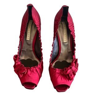 Pura Lopez Open Toe Red Heels, Size 9.5