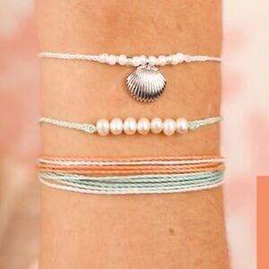 Pura Vida Bracelet Bundle Combo Set of 3. Clam Shell. Beaded Pearls. Catalina