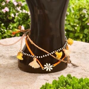Pura Vida Bracelet Bundle Combo Set of 3. Tippie, Flower, Tassels, Orange Yellow