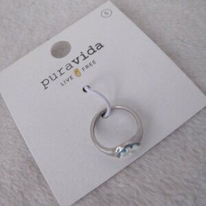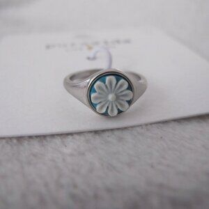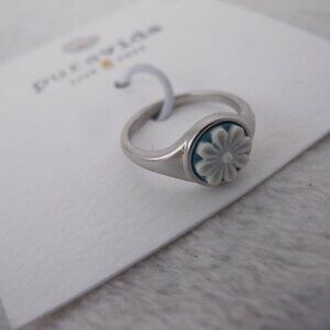 New on Package - Pura Vida Cameo Ring - blue flower. Brass base with rhodium plating and resin. Size 5.