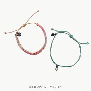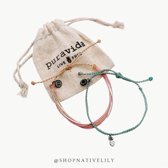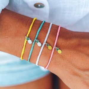 Pura Vida Set of 2 Bracelets Pineapple Bitty Braid & Multicolor With Bag