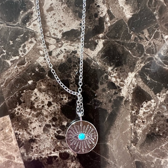 Elegant silver necklace with a striking turquoise charm " Evil Eye". Perfect for any occasion.
