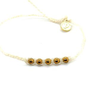 Pura Vida White Braid with 5 Gold Beads Bracelet