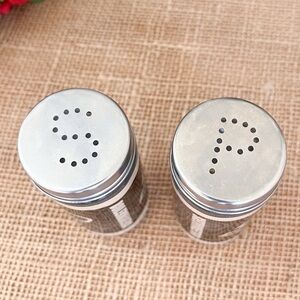 Purdue Glass Salt and Pepper Shakers with metal screw tops. 3 3/4” high.