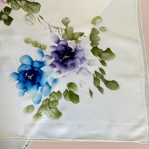 Pure 100% Silk Scarf Floral Hand Paint Chiffon Shawl Wrap Kerchief Bandana Cream