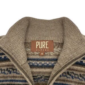 Pure Alpaca Augusto Baby Alpaca Peruvian Geometric Quarter Zip Sweater Beige SM