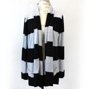 Pure Amici 2-ply 100% Cashmere Black/Grey Striped Open Cardigan Sweater Large