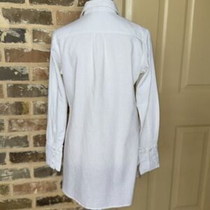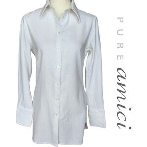 Pure Amici Classic White Linen Long Tunic Button Up Shirt Rounded Hem Sz S
