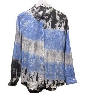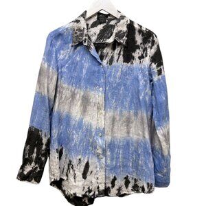 Pure Amici Linen Shirt Size Small Blue Gray Tie Dye Womens Button Up Top