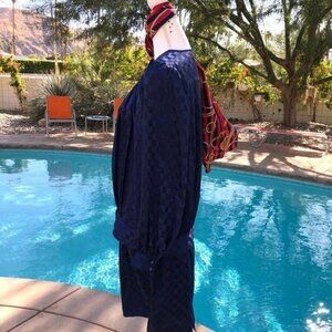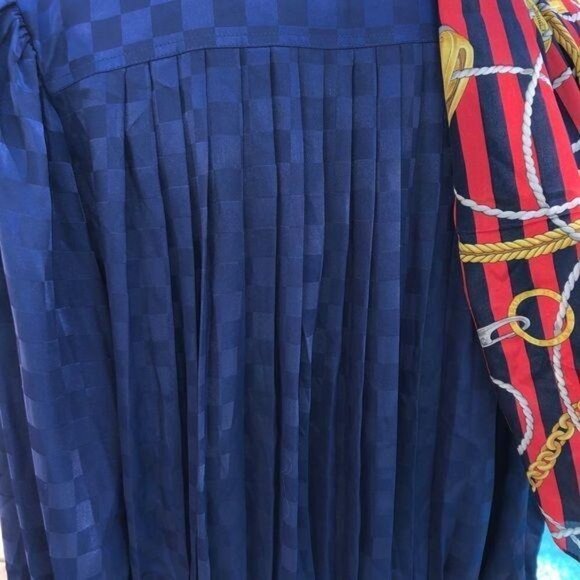Pure Argenti Skirt Blouse Scarf Set Womens Size 10 Navy Checkerboard Pattern