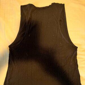 Black Pure Barre brand tank top with logo and "Love" script. Size medium. Good used condition.