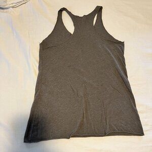 Excellent condition. Gray Pure Barre racerback tank with white imprint "Barre Is My Happy Hour." Size large.