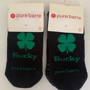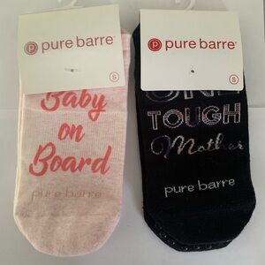Pure Barre socks with fun designs. Includes a mix of colors and patterns. Perfect for taking class or wearing around the house. Styles include Baby On Board, One Tough Mama, Happy Hour, Feeling Tucky and more.