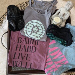Get ready for your Barre class with this perfect grouping of 3 tanks (two Pure Barre, one Spiritual Gangster), and 2 pairs studio sox.