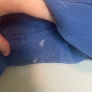 GUC due to age and a small stain on the inside hem (already there when I purchased it and it’s not visible when worn), lightweight terry cloth material. Very comfy!