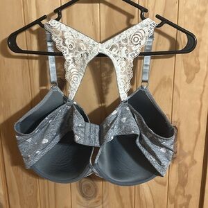 Pure Beauty by Rene Rofe bra. Elegant gray bra featuring delicate lace accents. Ideal for a sophisticated style.