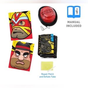 • Set includes punching bag, air pump and 3 interchangeable faces