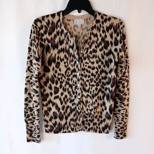 Pure Collection 100% Cashmere Cardigan Sweater Animal Print Size 4 Retails $210