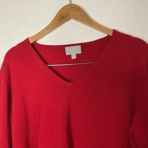 Pure Collection cashmere sweater, 100% cashmere red sweater, luxury knitwear, women’s V-neck cashmere pullover, timeless classic sweater