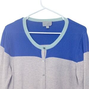 Pure Collection Cashmere Color Block Cardigan Sweater | Grey Blue | Size M