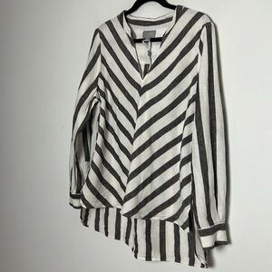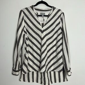 Pure Collection Chocolate White Linen V-Neck Long Sleeve Overshirt Size 12