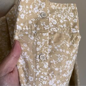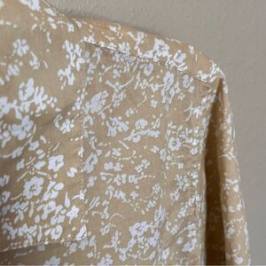 Pure Collection Cotton Tan/White Floral Long Sleeve Button Front Shirt Size 12