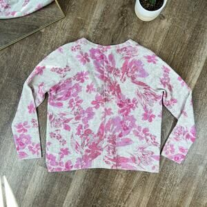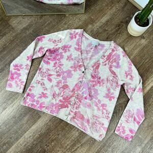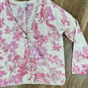 Pure Collection Floral Cashmere Button Up Cardigan Sweater Pink Sweet