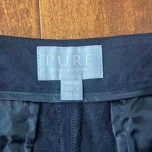 Pure Collection High Waisted Straight Silk Linen Navy Pant Size 4