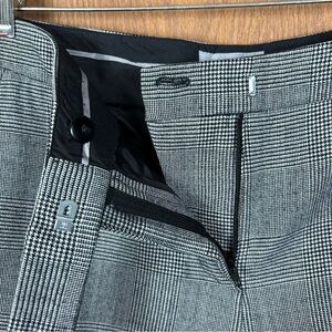 Pure Collection black and white houndstooth patterned wool blend trousers/slacks. Zip with side button and claps closure, two back button closure pockets. Slim straight leg, fully lined. Perfect for business/office wear. 52% wool, 46% polyester, 2% elastane. Size 2, see measurements for sizing.