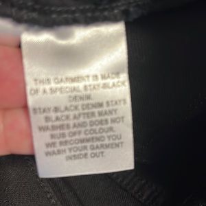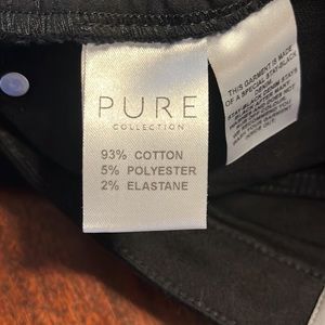 Pure collection Jean . Stay black. Does not wash out wash after wash. ECU worn only a couple times. 93% cotton 5% Poly 2% Elastane. Length is approx 30 in . Smoke free home.