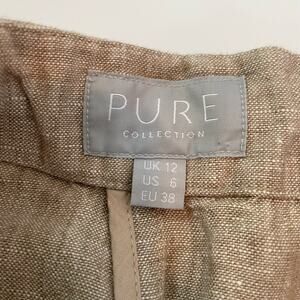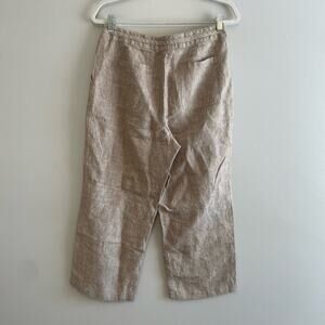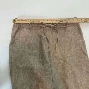 Pure Collection Size 12 Brown 100% Linen Capri Pants Drawstring Waist Pockets