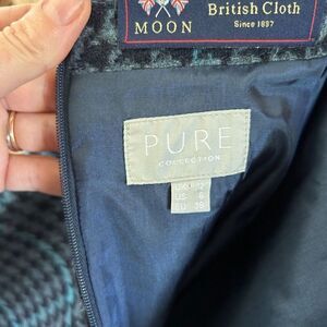 Pure Collection Size 12 Pencil Skirt Blue Black Houndstooth Wool British Moon