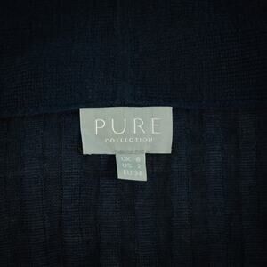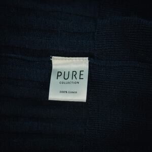 Pure Collection Size 2 Navy Blue Ribbed Knit Open Front Long Sleeve 100% Linen Knit Cardigan Sweater