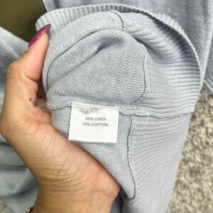 New with Tags Women’s Pure Collection Light Blue Linen and Cotton Blend Short Sleeve V-Neck Knit Sweater Top in Size 8/10