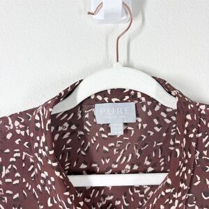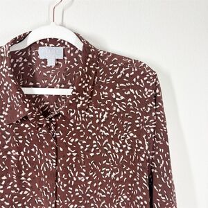 Pure Collection Washed Silk Relaxed Button Up Blouse Size 18 Brown Animal Spot
