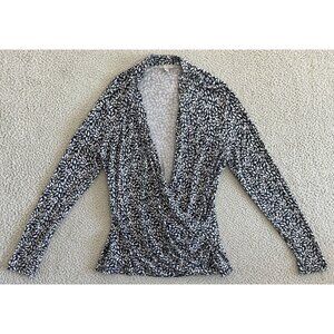 Pure Collection Wrap Blouse Women Size 12 Stretch Top Long Sleeve All Over Print