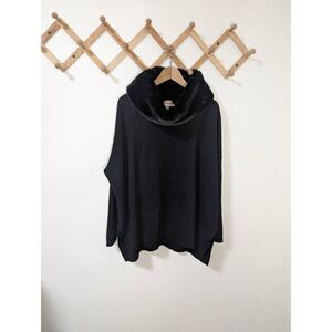 Pure Collection 100% Cashmere Faux Fur Cowl Neck Black Sweater - Size L