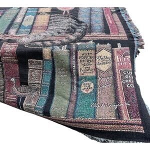 Pure Country Weavers Fredrick the Literate Woven Cotton Throw Blanket Cat Books