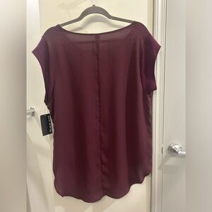 Pure Energy Cap Sleeve Top Purple Women’s 1X Sheer Scoop Neck