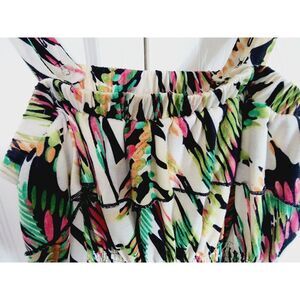 Pure Energy L Dress Short Colorful Gathered Waist Removable Straps Ruffle Vtg