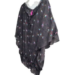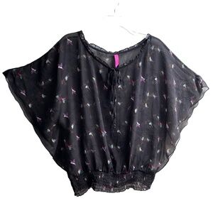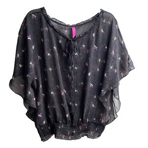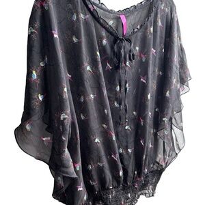 Pure Energy loose fit blouse with beautiful bat or angel wings and cute birds!