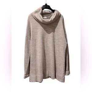 Pure Energy Womens Creme Grey Pattern Turtleneck Long Sleeve Sweater Top Sz 1X